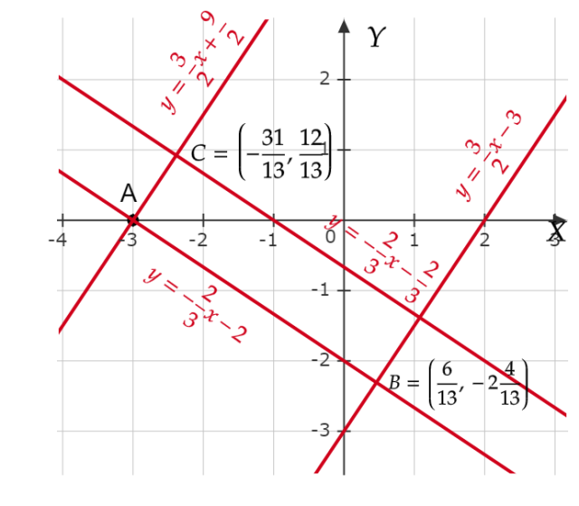 Na początku, naszkicuj podane proste i zaznacz punkt