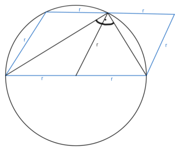 Zauważ, że jeden bok jest równy długości promienia okręgu, a drugi jest równy długości dwóch promieni, więc jest dwa razy dłuższy.