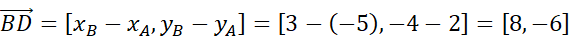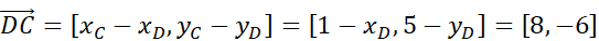 Równoległobok to czworokąt, który ma dwie pary boków równoległych. Punkt D musi znajdować się między punktem C i A. Najpierw oblicz współrzędne wektora