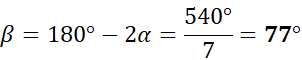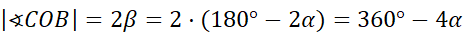 Zauważ, że trójkąty CBD i COB są równoramienne. Oblicz a pamiętając, że suma miar kątów w czworokącie wynosi 360° stopni.