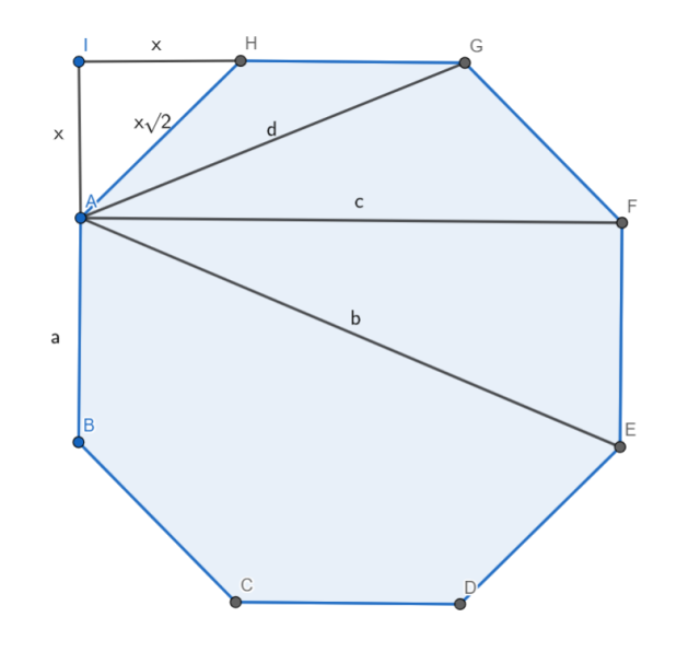 W tym zadaniu jakie długości mają przekątne ośmiokąta wiedząc, że ośmiokąt foremny ma bok długości 4.