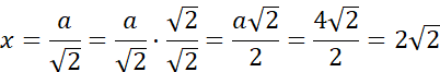 Zauważ, że |HI| to przeciwprostokątna trójkąta prostokątnego równoramiennego o boku x, więc |HI| =