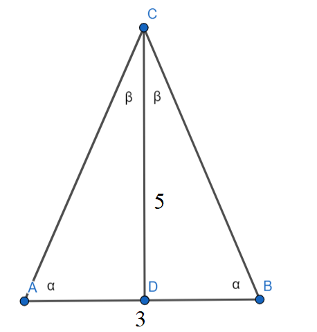 W tym zadaniu znajdź miary kątów trójkąta równoramiennego o podstawie długości 3 cm i wysokości opuszczonej na tę podstawę równej 5 cm.