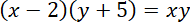 oznacza, że gdyby liczba kawałków była o 2 mniejsza, to każdy kawałek byłby o 5 cm dłuższy, a sznurek dalej miałby długość xy.