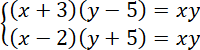 Rozwiąż układ równań, aby znaleźć długość sznurka i ilość kawałków, na które został pocięty. Sznurek ma długość xy.