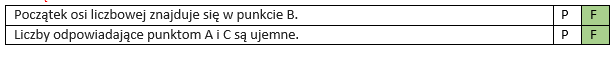 | Liczby odpowiadające punktom A i C są ujemne. | P | F |