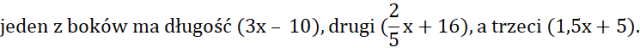 Z podanych informacji wyznacz x. Wykonując obleczenia dla otrzymanej wartości x, zauważysz, że wszystkie długości boków są równe.