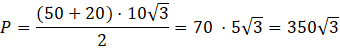 W tym zadaniu musisz obliczyć pole i obwód trapezu prostokątnego, w którym jeden z kątów ma miarę 150˚, dłuższa podstawa ma długość 50, a krótsza stanowi 40% tej długości.