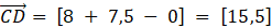 Zgodnie z informacją o długości odcinków, na jakie dzielą odcinek AB punkty C i D, długości wektorów