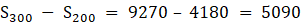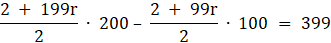 W tym zadaniu musisz znaleźć różnicę pomiędzy sumą 300 pierwszych wyrazów ciągu a sumą 200 wyrazów ciągu spełniającego opisane warunki, korzystając ze wzoru na sumę początkowych wyrazów ciągu arytmetycznego.