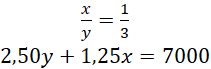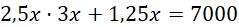 B. 1,25x + 2,5 ∙ 3x = 7000