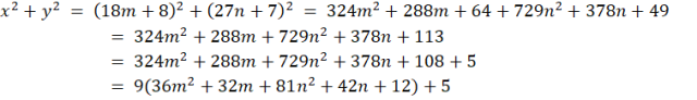 Skoro x daje resztę 8 przy dzieleniu przez 18, to oznacza, że liczba o 8 mniejsza od x jest podzielnia przez 18, więc jest postaci 18m dla pewnego m naturalnego. A zatem x = 18m + 8. Analogicznie y = 27n + 7. Wstawiając te liczby do