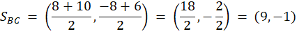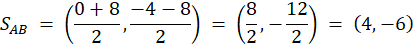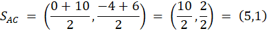 Zarówno w graficznym jak i algebraicznym rozwiązaniu wyznacz współrzędne środków boku trójkąta. Graficznie: stwórz szkic trójkąta i nanieś na niego wszystkie znane ci punkty. Narysuj proste odpowiadające środkowym trójkąta i znajdź współrzędne środka ciężkości. Algebraicznie: wyznacz dowolne dwa równania prostych zawierających środkowych trójkąta, a następnie znajdź współrzędne punktu ich przecięcia – środka ciężkości trójkąta.