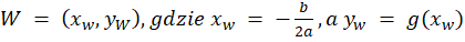 Na początku wyznacz wierzchołek funkcji g. Skorzystaj z ogólnego wzoru: jeżeli przesuniemy funkcję