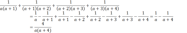 W rozwiązaniu przedstawiamy dwa sposoby na rozwiązanie tego problemu. Pierwszy z nich „standardowy” polega na sprowadzeniu wszystkich ułamków na jedną kreskę ułamkową, wymnożeniu, a następnie maksymalnym uproszczeniu , czyli poskracaniu wyrazów podobnych. Drugi polega na rozłożeniu każdego ułamka na dwa, tak zwany rozkład na ułamki proste, co później skutkuje poskracaniu się większości wyrazów.