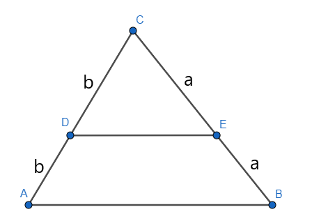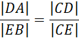 Narysuj rysunek pomocniczy i przyjmij oznaczenia jak na rysunku. Zauważ, że proste DE i AB są równoległe, bo