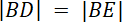 w zależności od nieznanego kąta. Założenie |BD| = |BE| daje wiele równości kątów, z których wynika że kąty przy punktach A i C muszą być równe.