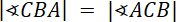 , musisz obliczyć miarę kąta między ramionami trójkąta ABC.