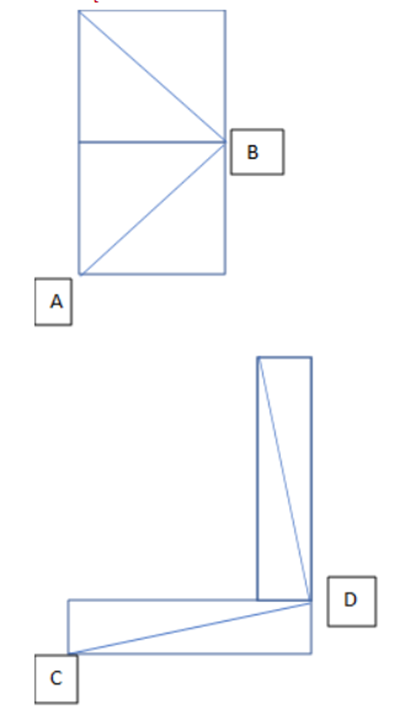 Narysuj odcinki prostopadłe, korzystając z metody posługiwania się prostokątami, z których każdy z pomocniczych prostokątów ma takie same wymiary. Jeśli jeden z prostokątów obrócisz i przystawisz prostopadle do drugiego w taki sposób jak na rysunku, to przekątne wychodzące z jednego wspólnego kąta utworzą między sobą kąty proste.