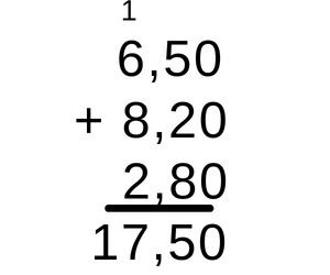 6 zł 50 gr + 8 zł 20 gr + 2 zł 80 gr = 16 zł + 150 gr = 17 zł 50 gr = 17,50 zł