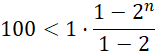 Podano ciąg geometryczny 1, 2, 4, … – oblicz, ile co najmniej pierwszych wyrazów tego ciągu należy zsumować, aby wynik był większy od 100.