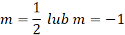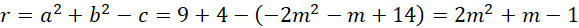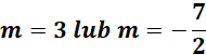 Wyznacz takie wartości m, aby okrąg x2 + y2 + 6x – 4y – 2m2 - m + 14 = 0 był styczny do prostej x – 2y – 3 = 0.