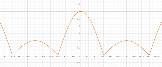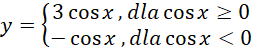 W tym zadaniu musisz narysować wykres funkcji y = cos x + |3 cos x| – |cos x| i podać jej zbiór wartości.