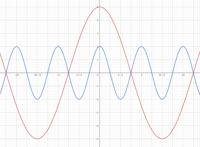 W tym zadaniu musisz narysować w tym samym układzie współrzędnych wykresy funkcji y = 5 cos