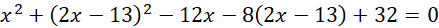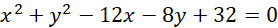 Wyznacz współrzędne wierzchołków trójkąta równobocznego wpisanego w okrąg opisany równaniem x2 + y2 – 12x – 8y + 32 = 0.