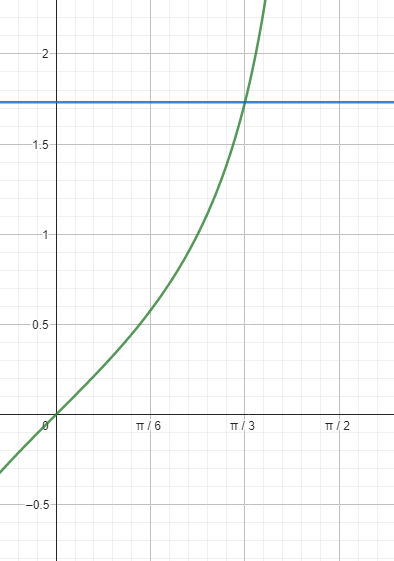 Przekształć równanie, a następnie narysuj wykres i odczytaj, dla jakiego argumentu funkcja trygonometryczna przecina się z prostą. Wynik zawęź do podanego przedziału.