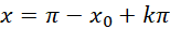 Przyrównaj do siebie argumenty obu funkcji, a następnie pamiętając o okresowości funkcji trygonometrycznej, zapisz wynik: