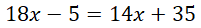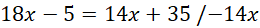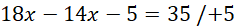 Należy odjąć od obu stron 14x i dodać do obu stron liczbę 5.