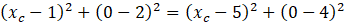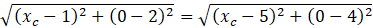 Określ współrzędne punktu C leżącego na osi OX, którego odległość od punktów A(1, 2) i B(5, 4) jest jednakowa.