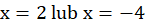 x = 2 to pierwiastek dziewięciokrotny