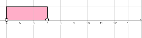 Zaznacz na osi zbiór spełniający jednocześnie warunki x > 4 i x < 7.
