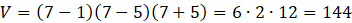 Objętość prostopadłościanu wyraża się poprzez iloczyn długości trzech różnych od siebie krawędzi. Dla x = 7 objętość ta będzie wynosiła 144, czyli zmieści się w przedziale (100, 200)