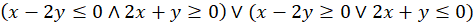 Pamiętaj, że iloczyn dwóch wyrażeń jest niedodatni wtedy i tylko wtedy, gdy dokładnie jedno z wyrażeń przyjmuje nieujemne wartości. Wyznacz obszary zawierające rozwiązania powstałych przypadków. Ostatecznym zbiorem rozwiązań jest suma otrzymanych obszarów.
