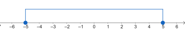 Liczby spełniające równanie to te, których odległość od 0 na osi liczbowej jest mniejsza lub równa 5, a więc liczby z przedziału od -5 do 5. Zapisz zbiór rozwiązań i zaznacz go na osi liczbowej.