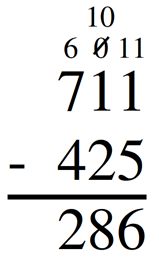 711 – 425 = 286