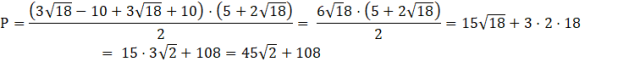 Wartości wstaw do wzoru na pole trapezu. Najpierw wykonaj dodawanie i odejmowanie w liczniku. Następnie dzielisz licznik przez mianownik oraz w liczniku wymnóż każdy ze składników dodawania przez liczbę przed nawiasem.