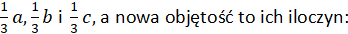 Prostopadłościan ma objętość daną wzorem abc, gdzie a, b i c to jego wymiary. Nowe wymiary to