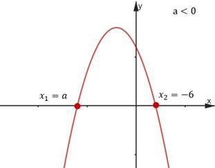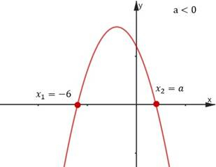 Nierówność kwadratową rozwiązujemy wyznaczając miejsca zerowe trójmianu. Następnie rysujemy pomocniczy schemat funkcji, z którego odczytujemy, że –6 spełnia tę nierówność. Rozpatrujemy dwa przypadki, w zależności od wartości a.