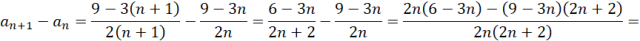 Ponieważ mianownik jest zawsze większy od zera (n jest liczbą naturalną) a licznik ujemny, całość też jest ujemna, co dowodzi, że podany ciąg jest malejący.