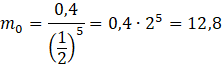 W tym zadaniu musisz obliczyć masę izotopu 131I, jaką zawierała próbka 40 dni wcześniej, jeśli zawiera teraz 0,4 mg jodu 131I, a okres połowicznego rozpadu wynosi około 8 dni.