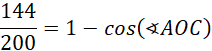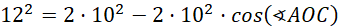 Skorzystaj z wyliczonych uprzednio długości charakterystycznych oraz twierdzenia cosinusów, by wyznaczyć cosinus poszukiwanego kąta.