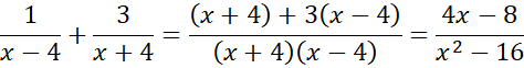 Dziedzinę określamy żądaniem, aby każdy mianownik był różny od zera, następnie doprowadzamy wyrażenie do wspólnego mianownika i wymnażamy nawiasy.