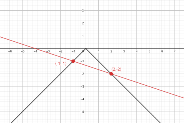 Rozwiązaniem układu jest punkt o współrzędnych oraz .Sprawdzamy poprawność rozwiązania metodą algebraiczną.Wyznaczamy z drugiego równania.