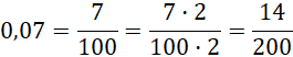 Zamień ułamek dziesiętny na ułamek zwykły o liczniku 14, do tego celu najpierw zamień ułamek dziesiętny na zwykły i rozszerz otrzymany ułamek przez 2, żeby w liczniku było 14. Po zamianie ułamka możesz porównać, go z ułamkiem z gwiazdką.Pamiętaj, że ułamki o wspólnych mianownikach są takie same, tylko wtedy, gdy mają takie same liczniki. Zamieniając ułamki dziesiętne na zwykłe, należy liczbę przed przecinkiem zapisać jako całości, a liczbę po przecinku jako licznik. W mianowniku należy wpisać liczbę, która ma na początku 1 i tyle zer, ile ułamek dziesiętny ma miejsc po przecinku.