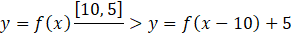 przesunięty o 10 jednostek w prawo i 5 jednostek w górę. Zatem przedziały, w których funkcja jest