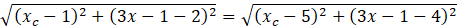 , wiedząc, że |AC| = |BC|. Skoro punkt leży na prostej y = 3x – 1, to jego druga współrzędna wynosi 3x – 1.